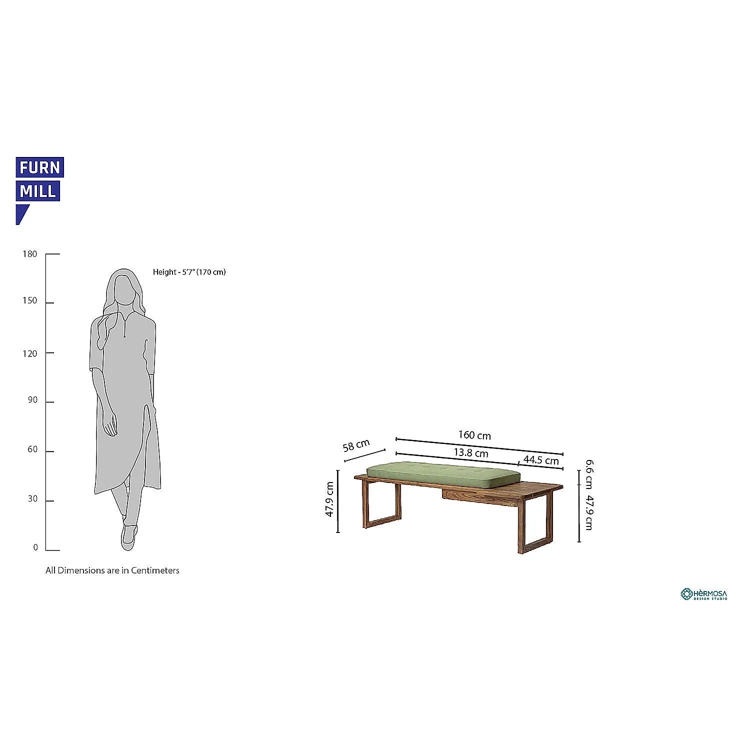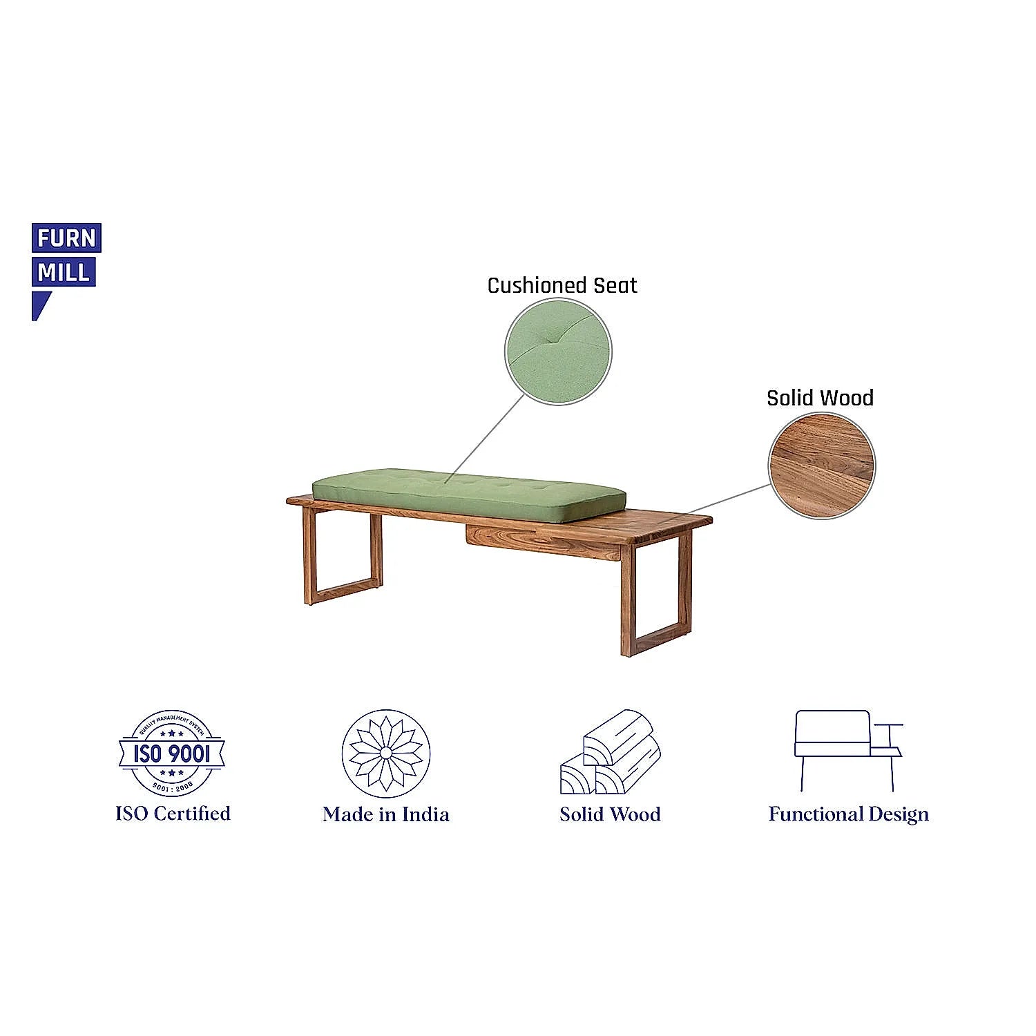 The green Prague Bench is a stunning wooden bench design from Furnmill. It is a cushioned solid wood bench, available in natural finish. This wooden bench is a chic and sturdy piece of budget-friendly furniture. It is a must-have piece if you want to add a dash of elegance to any surroundings.