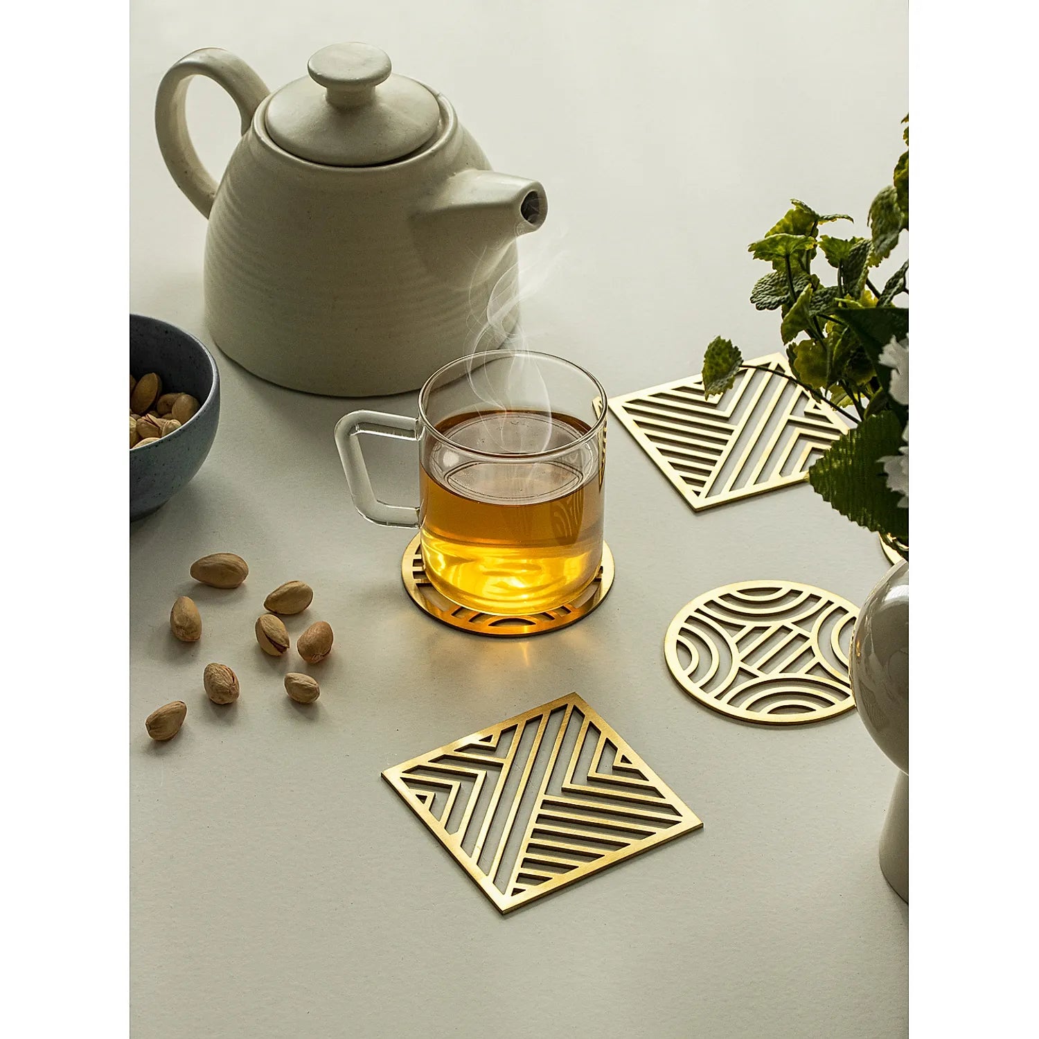 Bringing to you- The Chrysler Collection The collection is a perfect amalgamation of Furnmill's Design Philosophy and Classical French Aesthetic of Art Deco. Geometrical linearity, angular form, Sleek design, symbolize modernism with an explicit touch of tradition. The premium collection is perfect to add the right amount of bling and elegance to any setup. Crafted in stainless steel, the coasters are PVD coated with a gold finish. The intricate geometric patterns are laser cut with high-tech machinery for fine detailing while promising strength and durability.