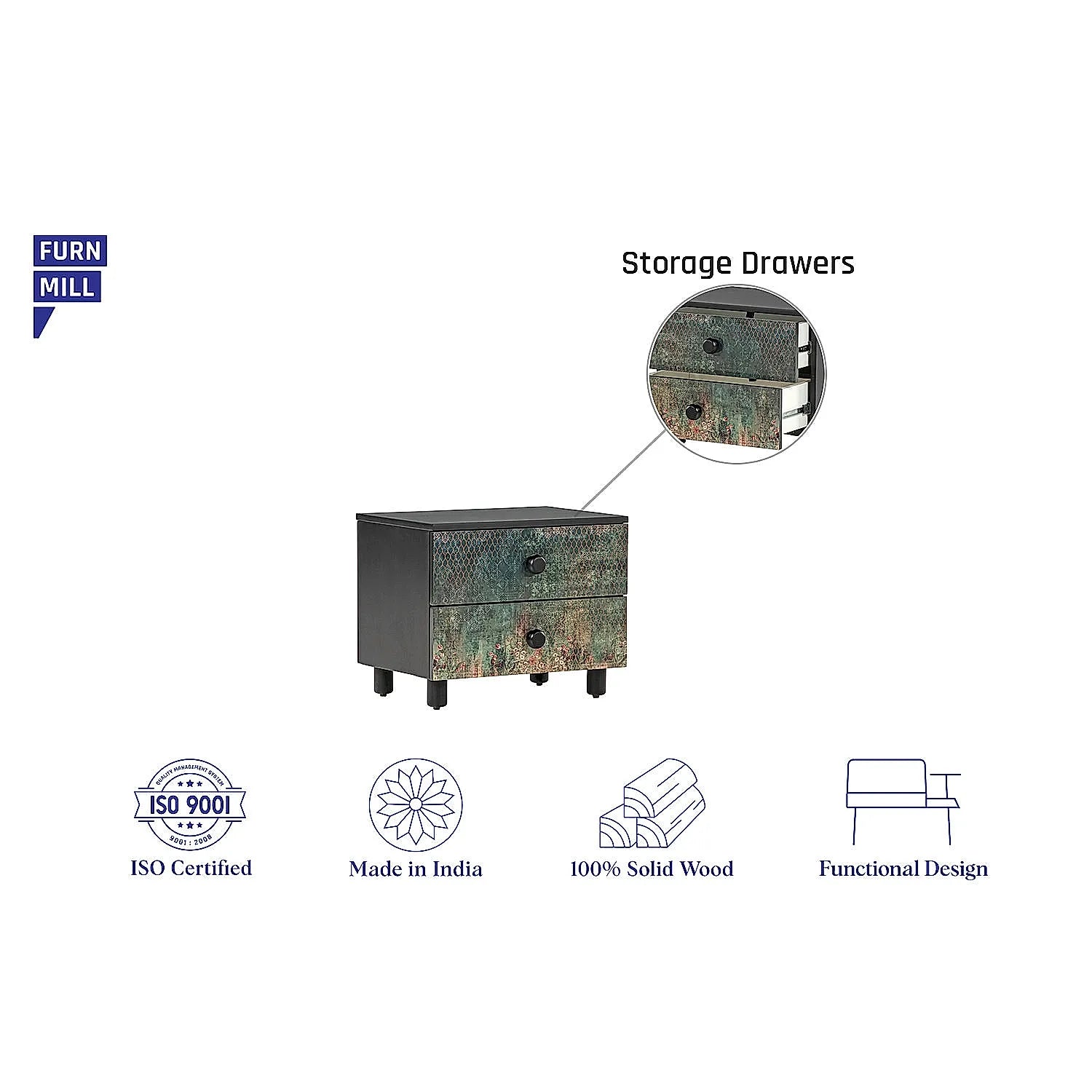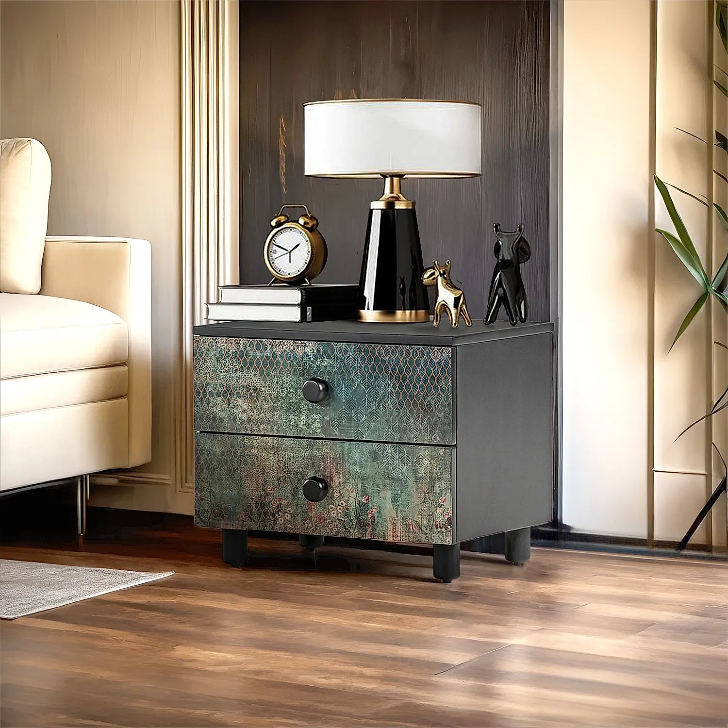 The Sway Side Table seamlessly displays the indigenous motif-inspired print giving a vivid dimension to the bedroom. Promising enough storage and style, this gem is exquisite and leans towards rustic-retro style.