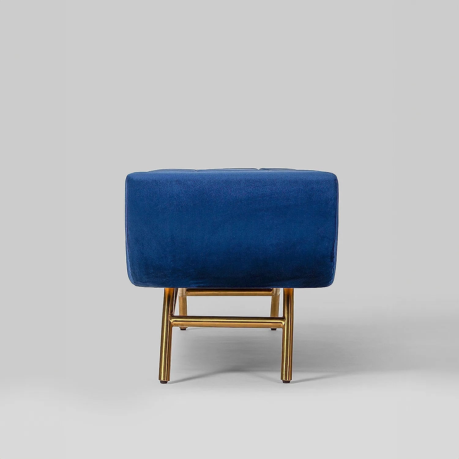 Theo Fabric Bench with Metal Legs (Velvet, Blue)