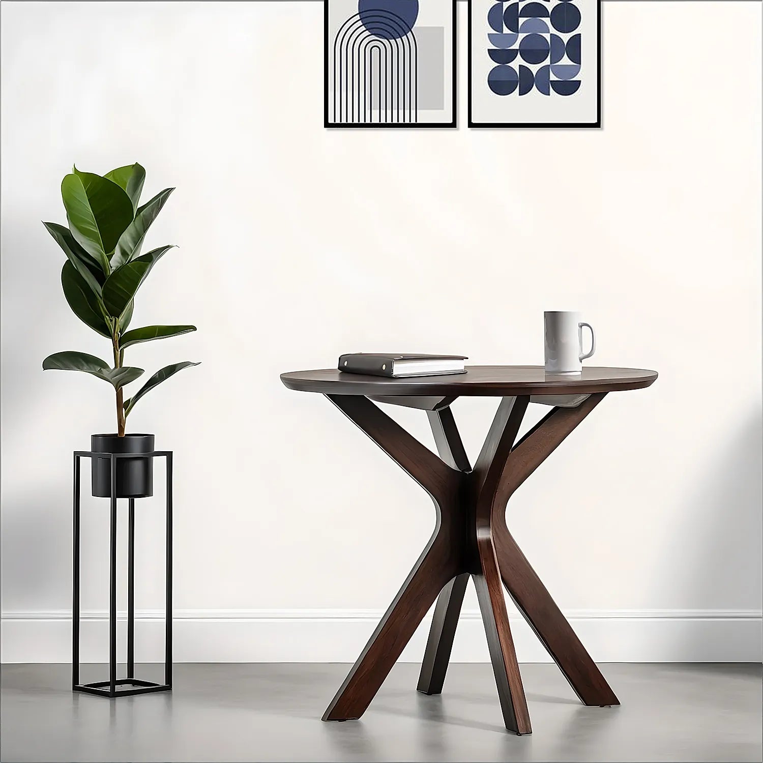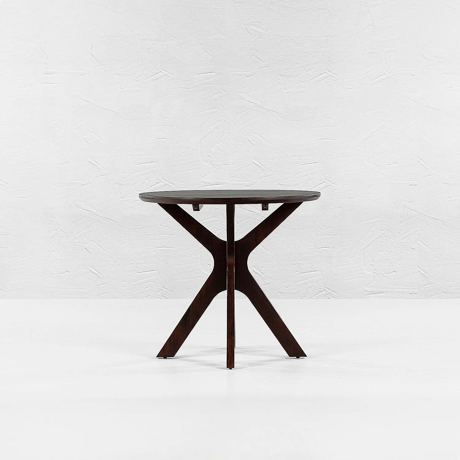 Round shaped coffee table, with featured legs is an ideal amalgamation of retro & contemporary design. The top of the table complements the angular base with the "X Design".