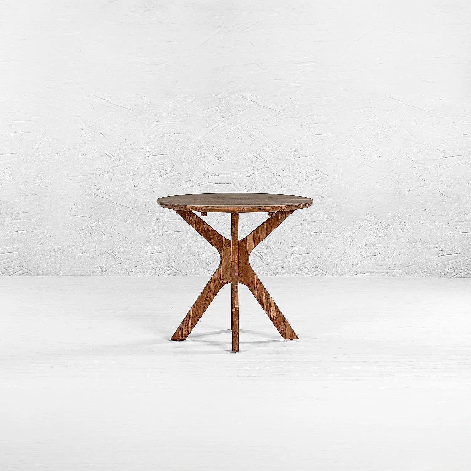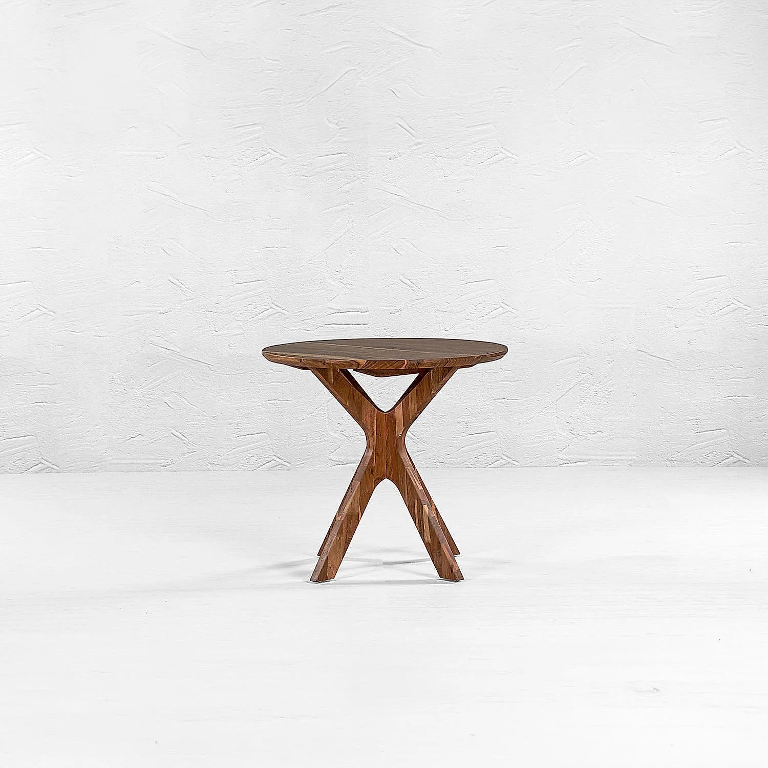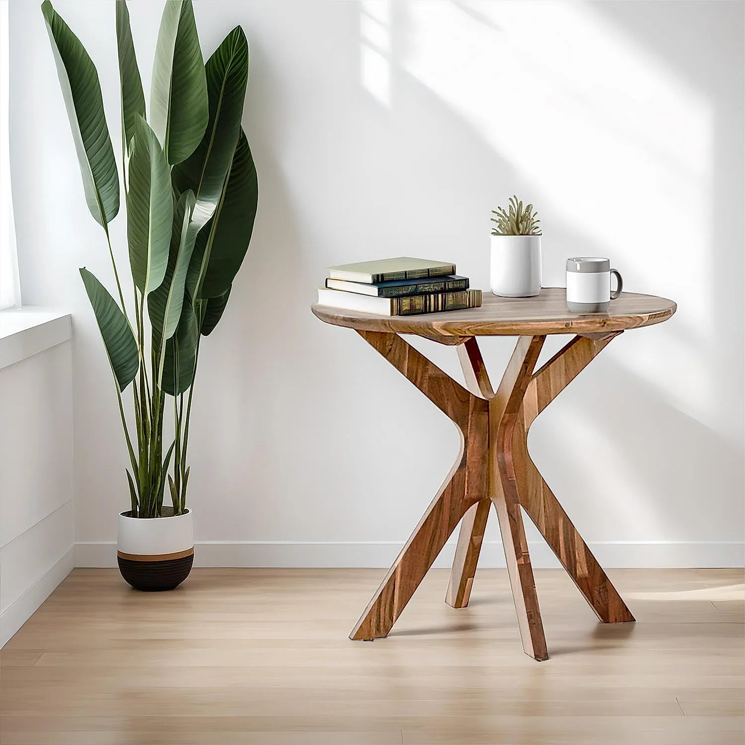 Round shaped end table, with featured legs is an ideal amalgamation of retro & contemporary design. The top of the table complements the angular base with the "X Design".
