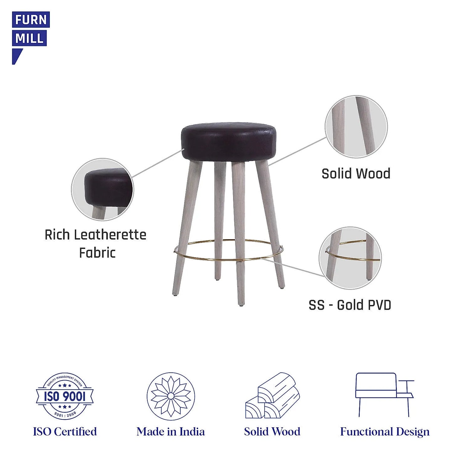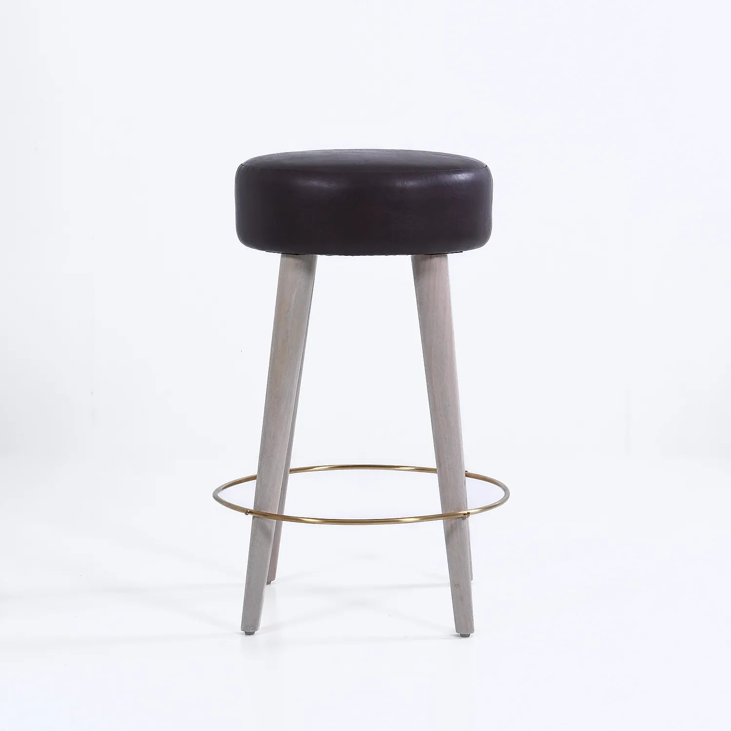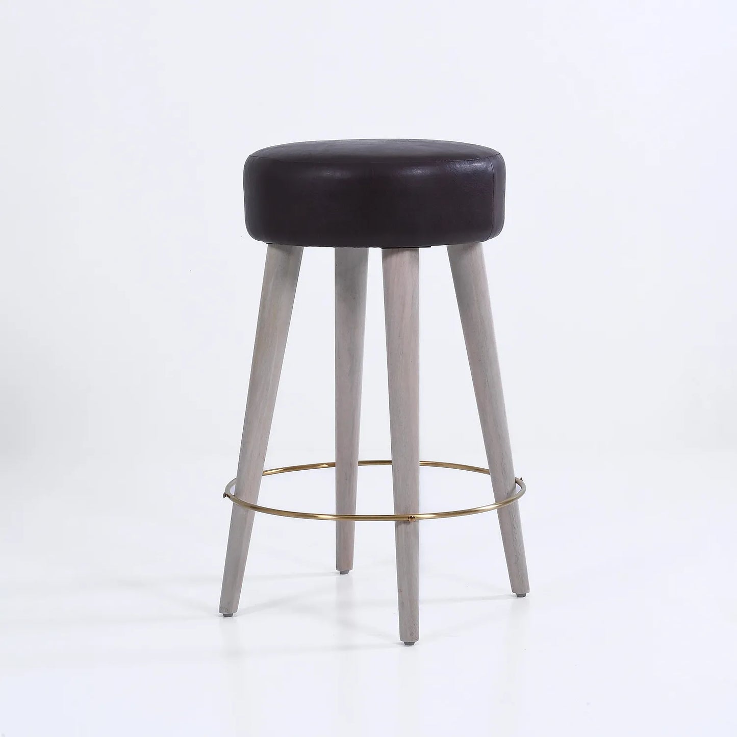 The Yoho Bar stool features a round padded upholstered seat that offers a plush and inviting experience. The wooden legs provide a sturdy and durable foundation, while the metal footrest adds a touch of modern sophistication and extra support. With its ergonomic design and compact size, this bar stool is perfect for small spaces or to complement a minimalist aesthetic. Whether used at a kitchen counter or a home bar, this stool effortlessly combines comfort and style.
