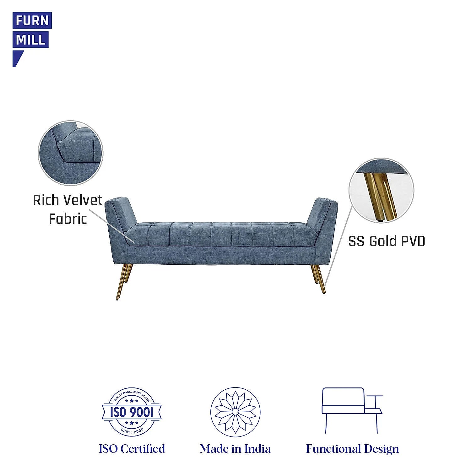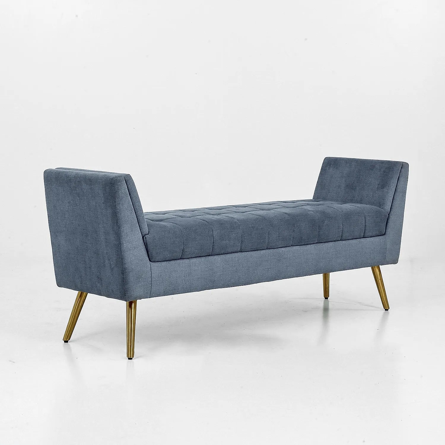 Add a touch of glamor to your entryway or living room with Furnmill's Zibo Bench. Featuring sleek gold PVD legs, square tufting on the seat and cushioned arms that invite you to cozy up with your latest read, this bench brings style and comfort together in perfect harmony. The bench's compact silhouette allows it to seamlessly blend into both small and large rooms. Place it at the foot of your bed, in a wide hallway or behind a sofa for a posh perch that's as chic as it is versatile. The glamorous Zibo Bench may just become the most popular seat in the house.